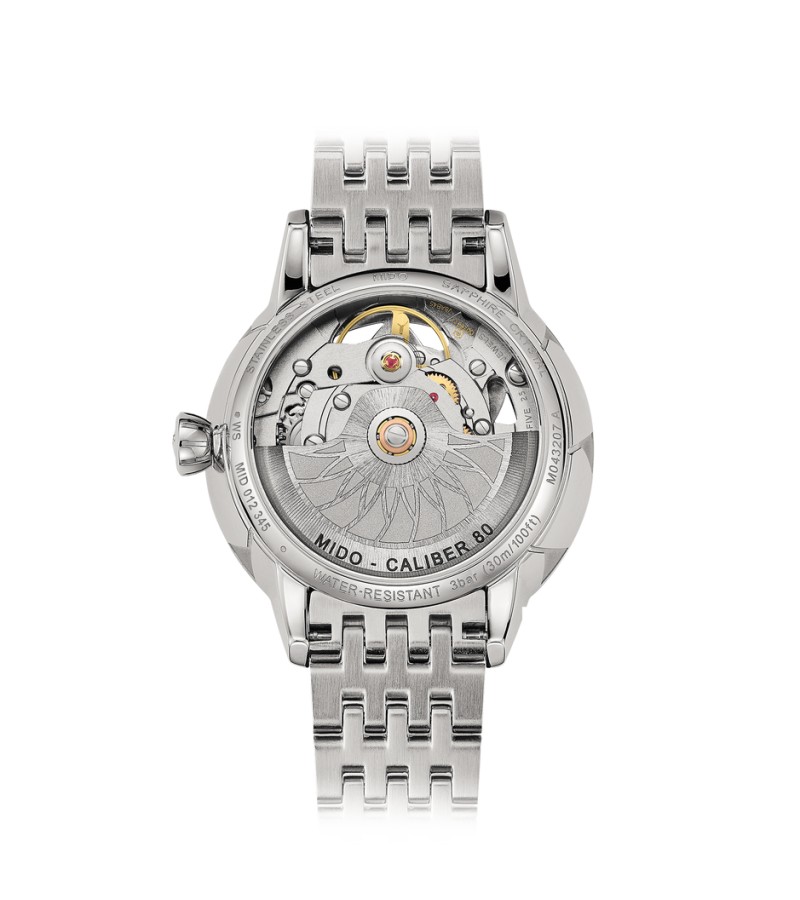 For the first time, Mido has created a skeleton Swiss watch especially dedicated to women. The new and audacious Rainflower Blossom features delicate lines, directly inspired by the lotus flower shape of Singapore’s contemporary ArtScience Museum. Resolutely feminine petals are interlaced along the edges. Adorned with an openwork flower, the captivating dial reveals at its centre the Caliber 80 – the latest-generation automatic movement, whose mainplate has been specially skeletonised and decorated. It invites the wearer to marvel at the passing of time with audacityand elegance.