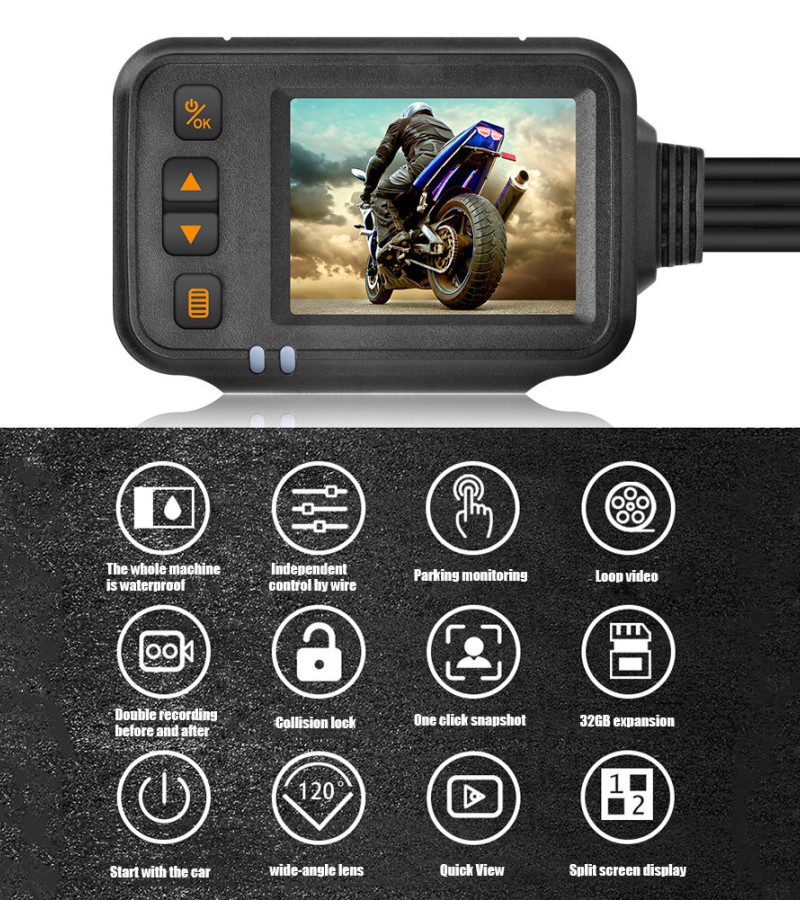 This is a motorcycle DVR system with high-definition photography, photographing, and audio recording function.