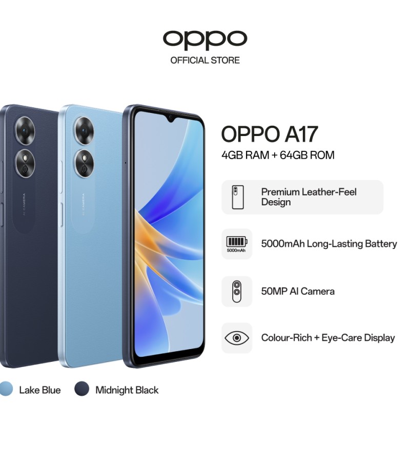 OPPO A17/高级皮革质感设计/500MP AI摄像头/5000mAh长效电池