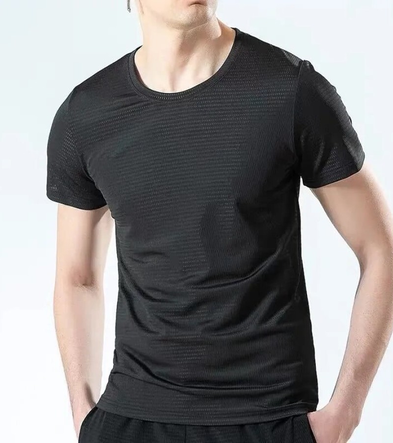大码冰丝T恤男式网眼短袖男式宽松运动快干网眼透气衬衫夏季半袖