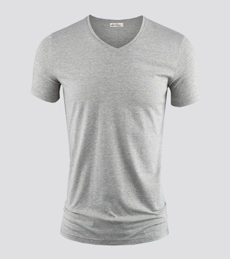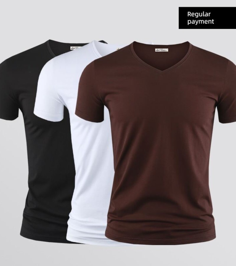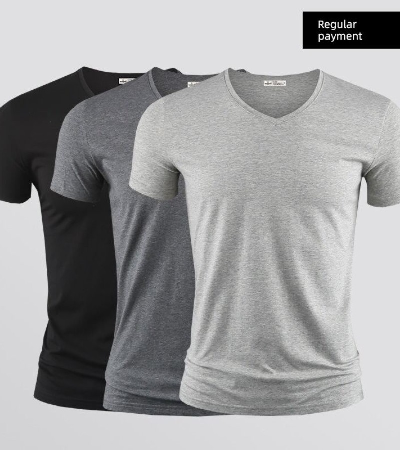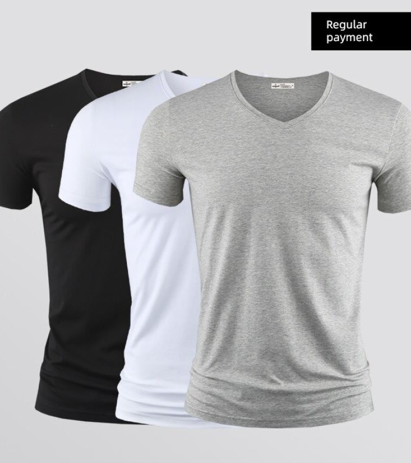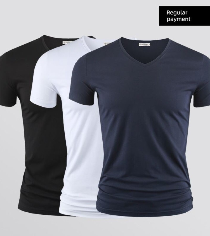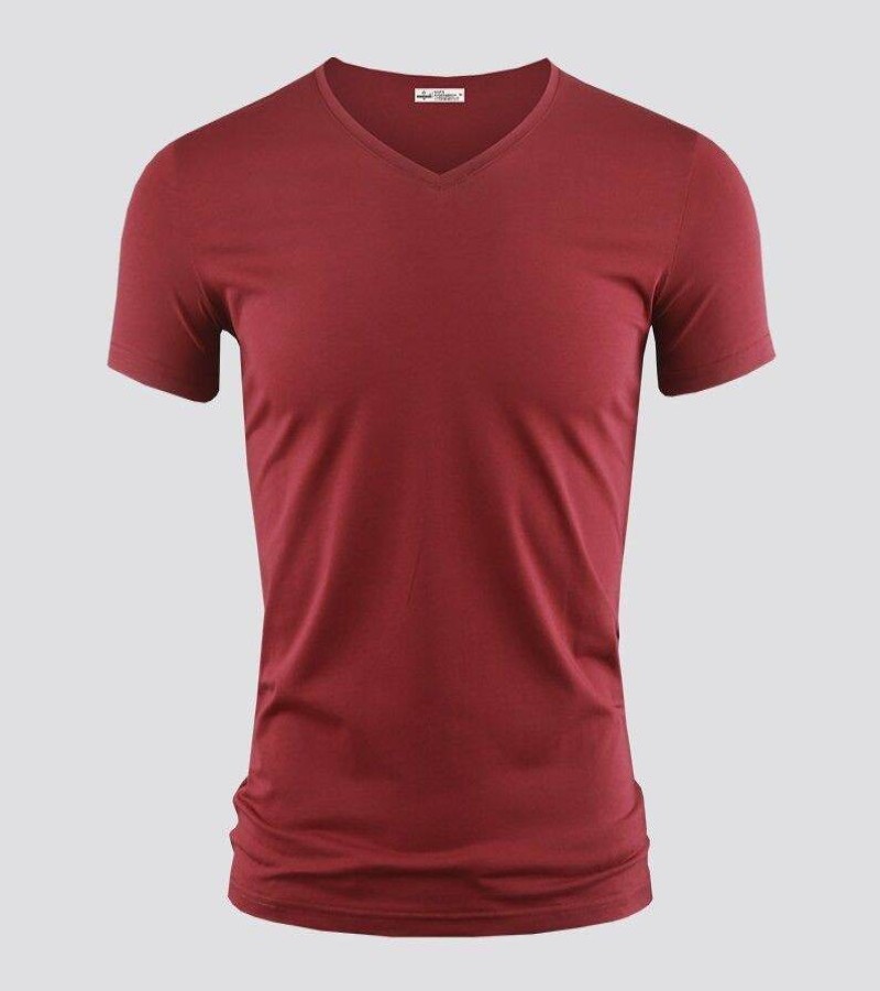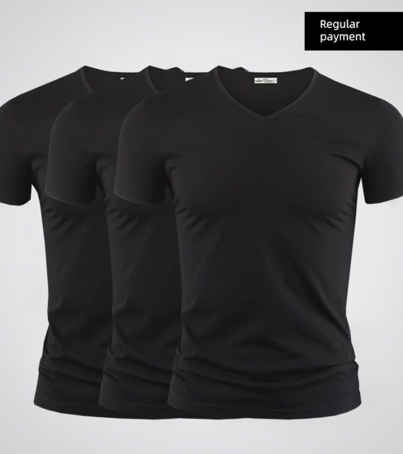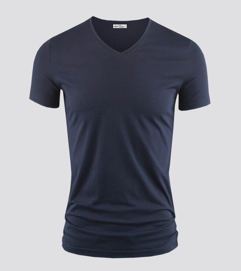 Modal男式纯色V领修身冰丝短袖衬衫