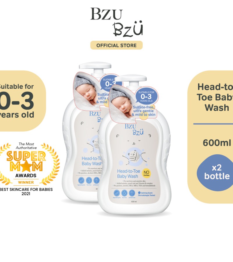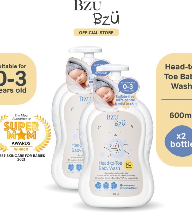 BzuBzu从头到脚婴儿洗发露套装,600ml |专为新生儿和敏感肌肤设计