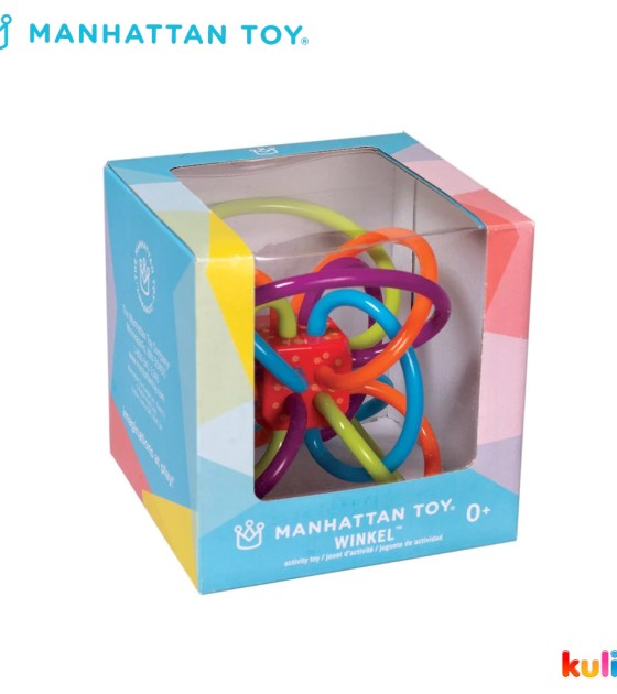 Colorful loops made from soft, pliable plastic are easy to grasp and hold plus caregivers can refrigerate for a soothing teether. The Winkel teether rattle is a must have for teething newborns. Made of pu tubing (polyurethane) and as such does not contain BPA or PVC and meets the CPSC and European requirements for phthalates. Was named a finalist for ASTRA Best Toys for Kids award program, is the winner of an Oppenheim Toy Portfolio Award, Dr. Toys Best Classic Toy Award and a Hot Diggity Award. Finalist for a Cribsie Award.