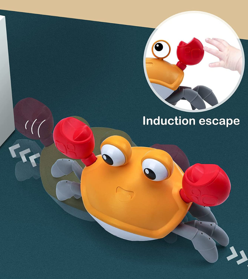 • 【Escape Crab Toy】Adopt advanced induction obstacle avoidance function, when it encounters an obstacle during moving, it will move in the opposite direction in time. Can attract children to grab and exercise children's coordination ability.