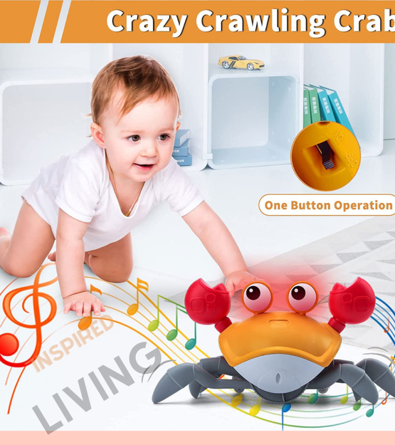 爬行螃蟹婴儿玩具-通过音乐和灯光自动避开障碍|圣诞礼物|圣诞礼物/生日礼物