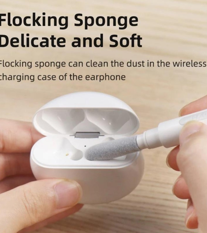 Made of furry flocking fabric, the soft sponge reaches deep into the wireless charging cases and wipes clean all the dust and dirt. Tip: you can spray a small amount of alcohol onto the surface to strengthen its cleaning power and Wash the sponge in water with a cleaning solution after it becomes dirty