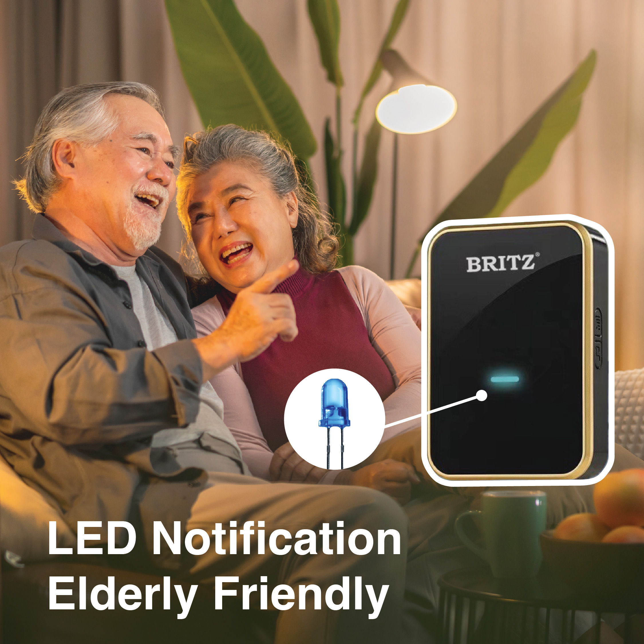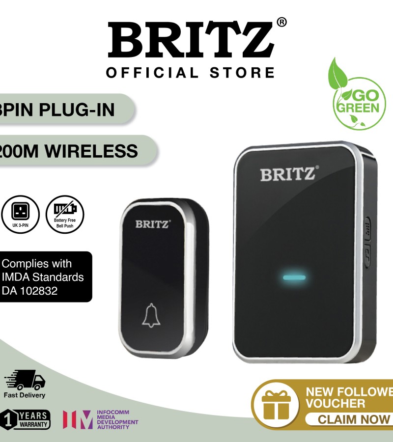 [无需电池]BRITZ无线动能自供电门铃门铃套装[K637AC][插入式]/免费胶带+螺丝/[快速发货1-2个工作日]