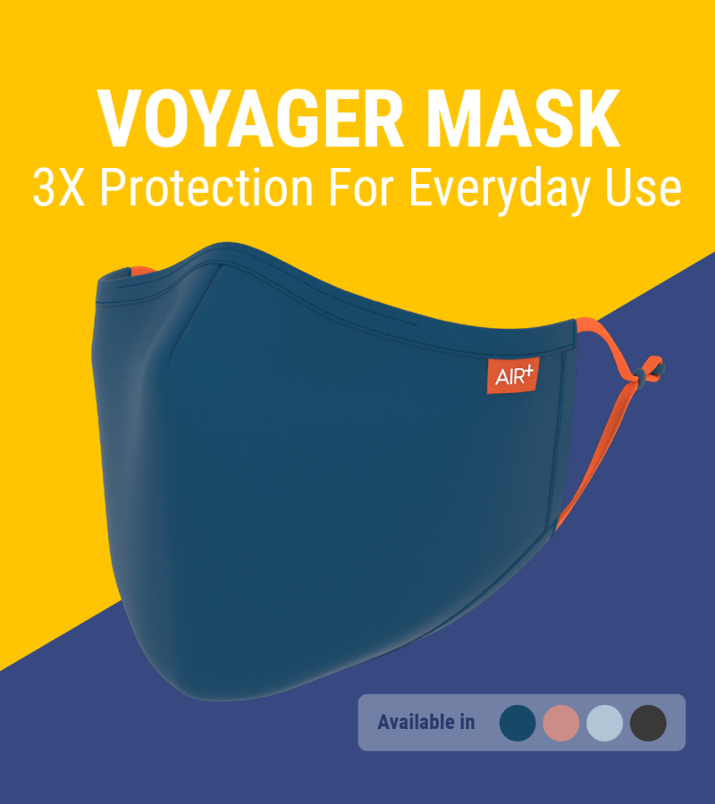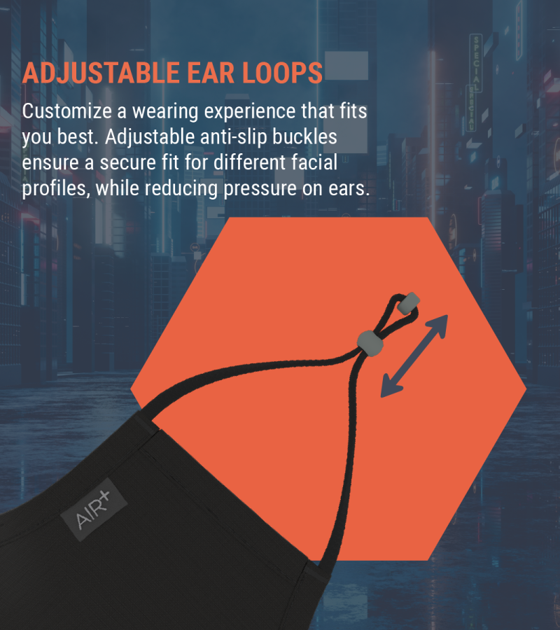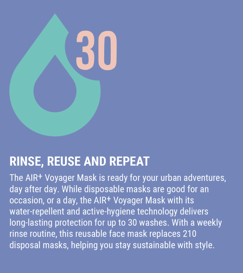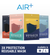 AIR⁺Voyager |可重复使用口罩| M&L尺寸|1件|可洗|抗菌|防水|可调节耳环