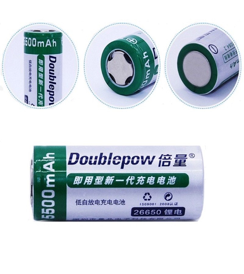 Doublepow 26650 5500mAh Li-on Rechargeable Flat Head Battery