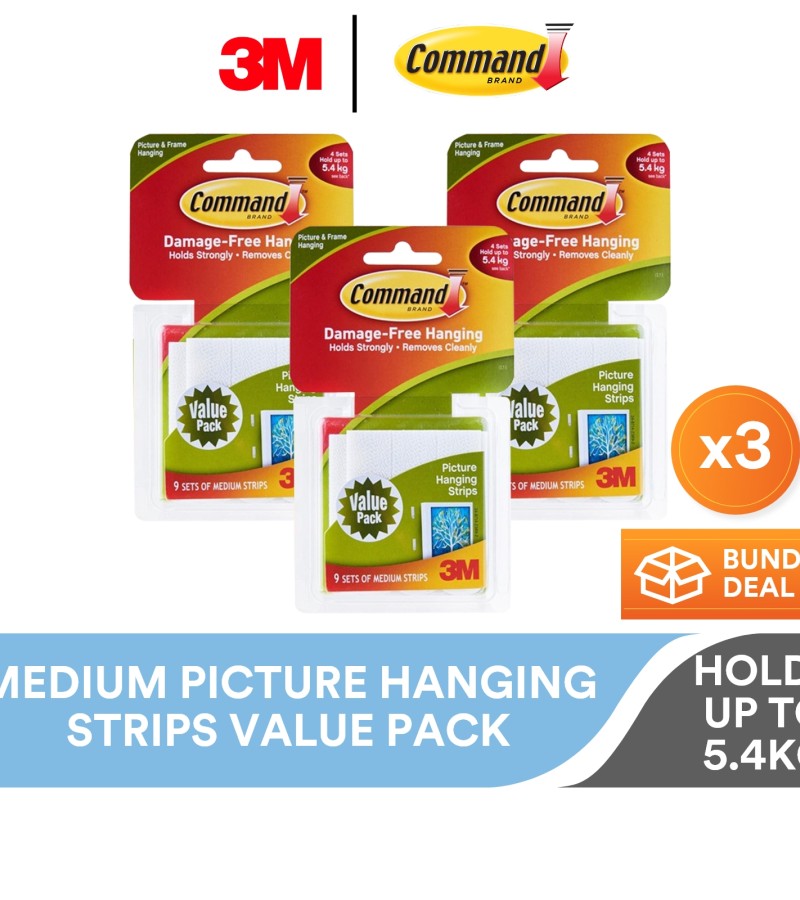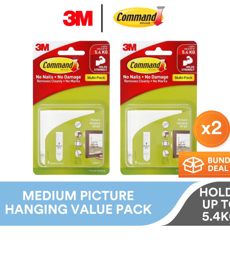 3M Command白色中号挂画条超值包装,17204VP,9/包,最多可容纳5.4公斤,18x24英寸框架,框架,装饰,艺术品