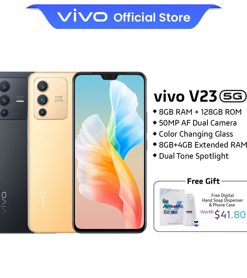 vivo V23 5G[8GB+4GB/128GB]50MP自动对焦前置双摄像头|彩色充电玻璃|7.39mm简单精致|双色聚光灯|105*超广角摄像头【2年保修】