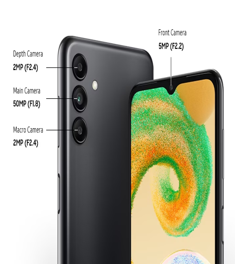 Samsung Galaxy A04sKey Features 6.5" Infinity-V Display Minimal Look, Quality Design Capture More Moments With Triple Camera Massive 5000mAh Battery Powerful Processor Fingerprint Sensor