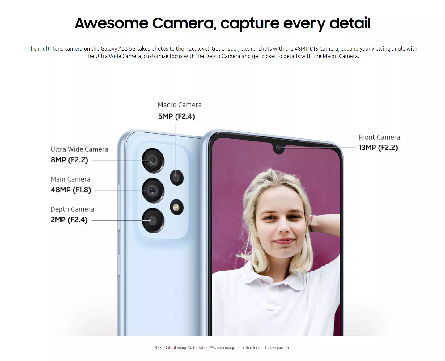 三星Galaxy A33 5G 128GB(免费:钢化玻璃+后盖)