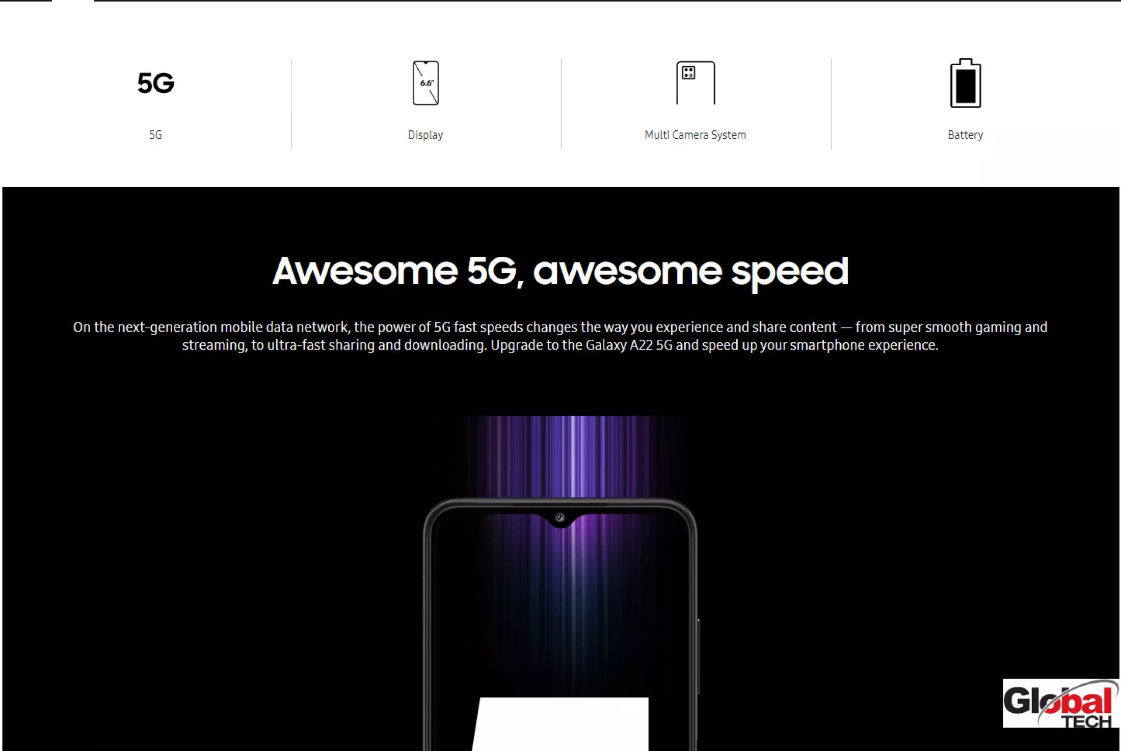 三星Galaxy A22 5G 128GB Rom+4GB Ram(免费:钢化玻璃+后盖)