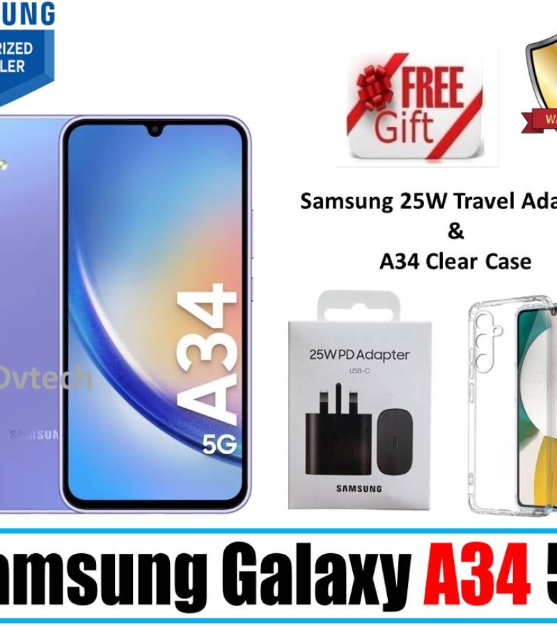 - FREE SAMSUNG 25W Travel Adapter & A34 Clear Case