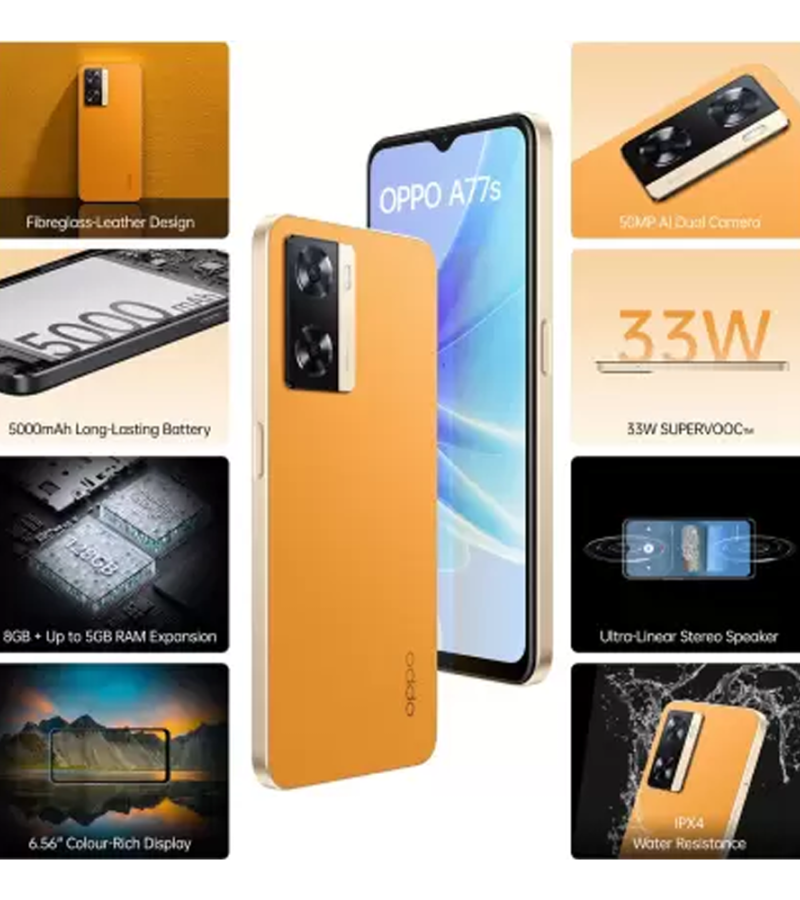 OPPO A77S 4G(8/128GB):本地套装:2年保修:免费赠品(TEMPERGLASS、后盖、无线颈带、REDMI 10K移动电源、自拍杆):!!。