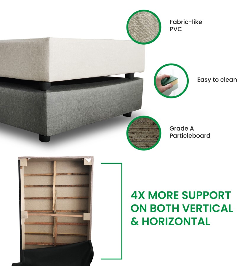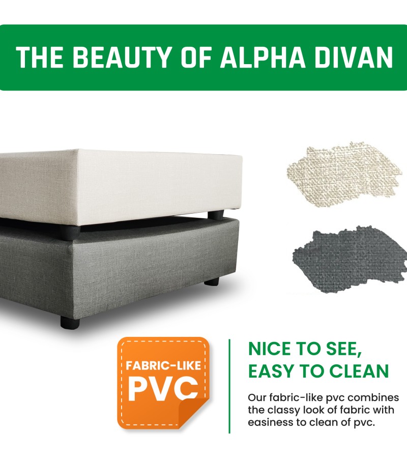 ALPHA Divan,织物状PVC,易于清洁的坚固底座,可选尺寸(特大号、大号、超级单人、单人)