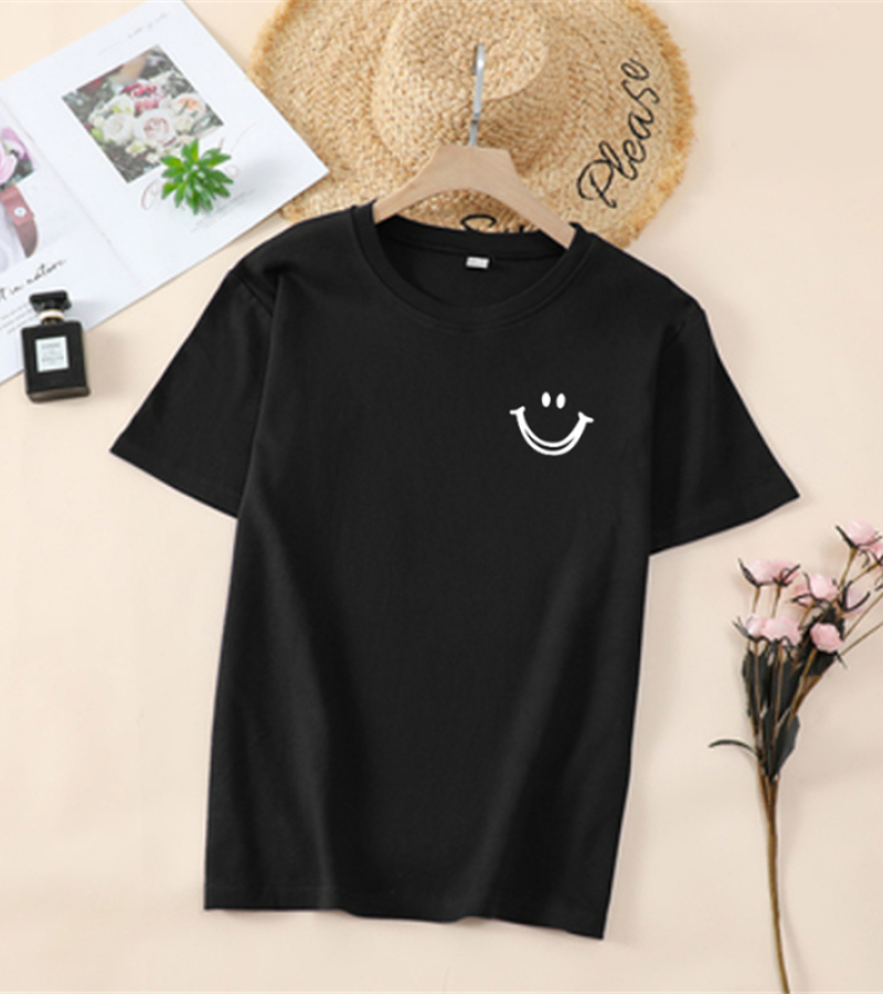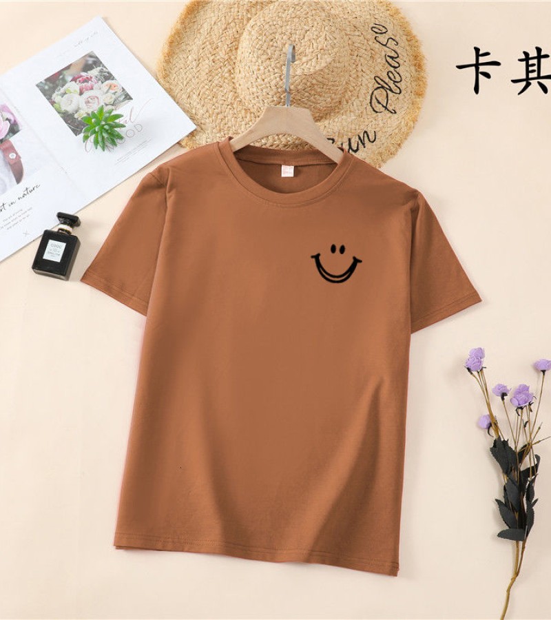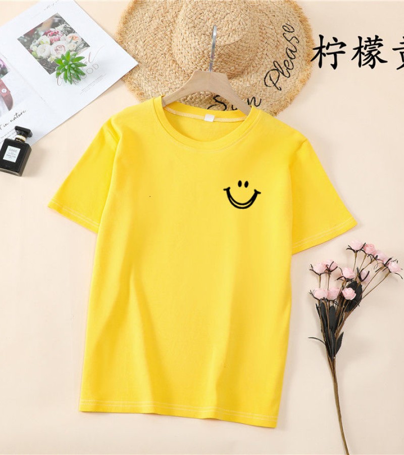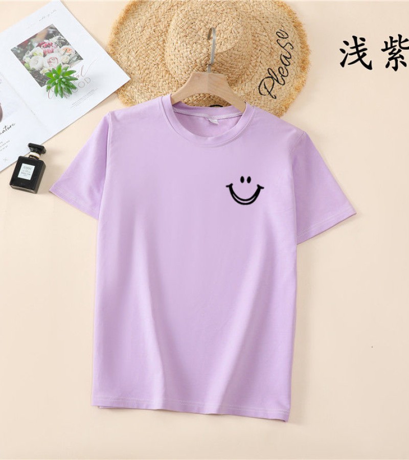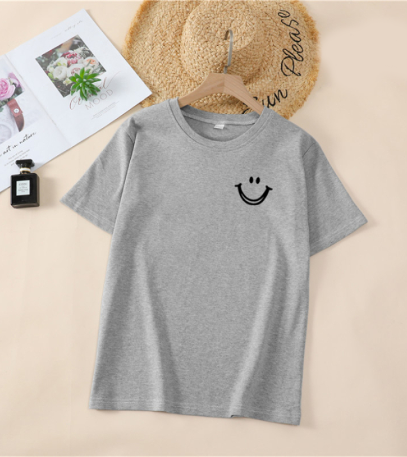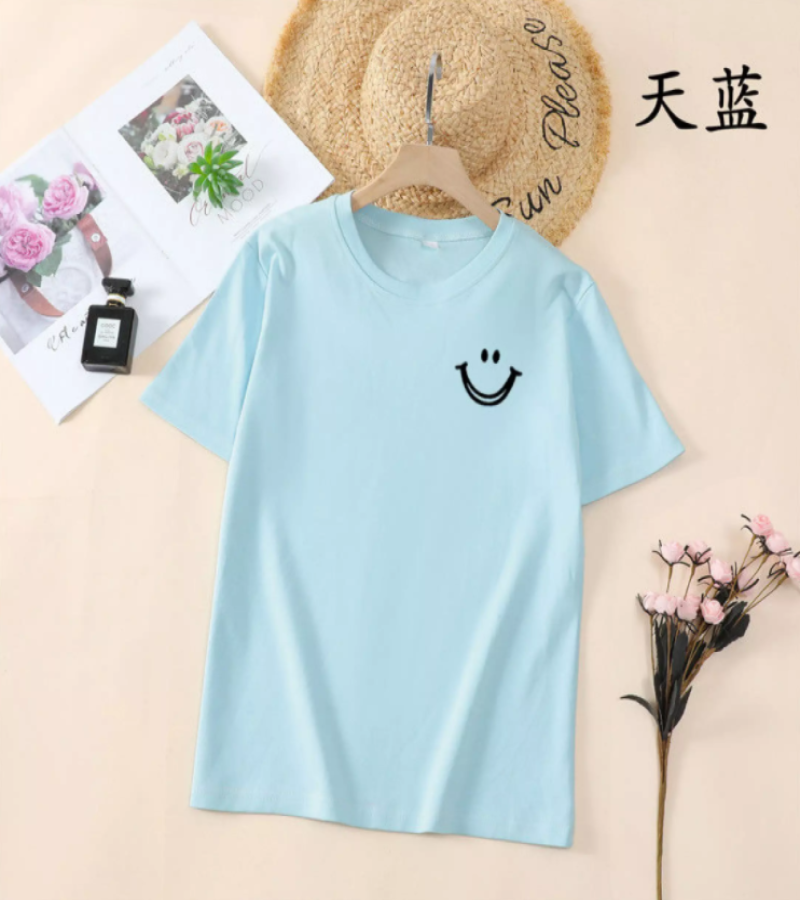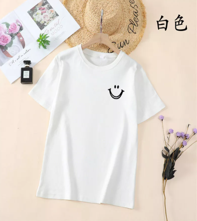 韩国T恤女士优雅舒适微笑T女士短袖卡通衬衫