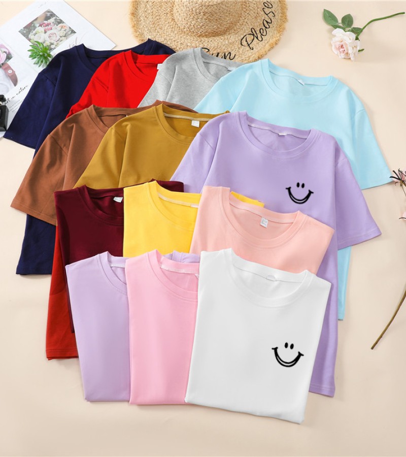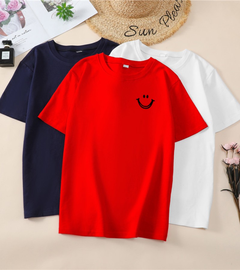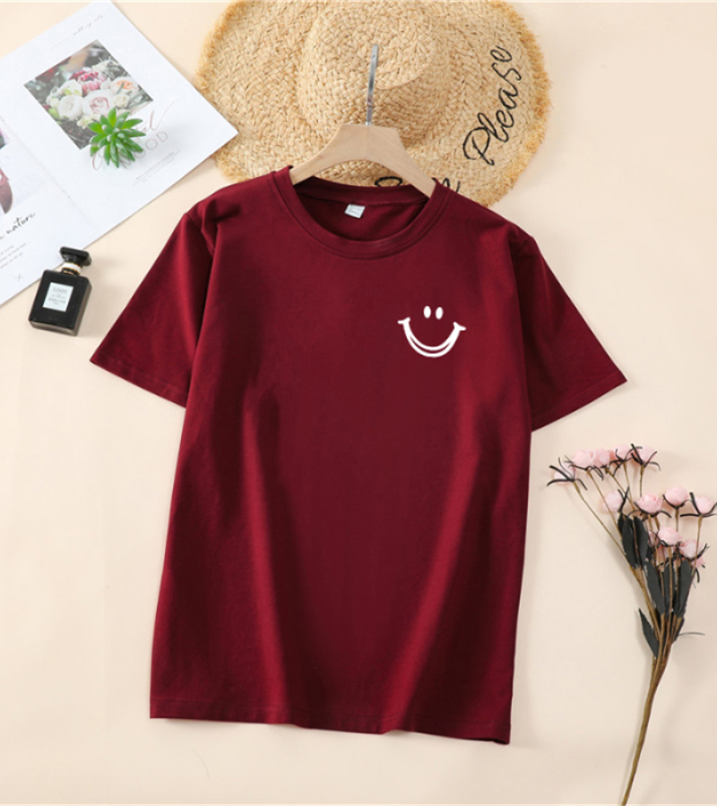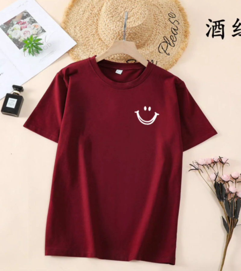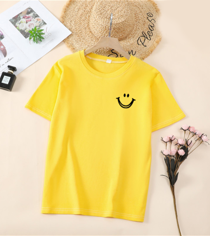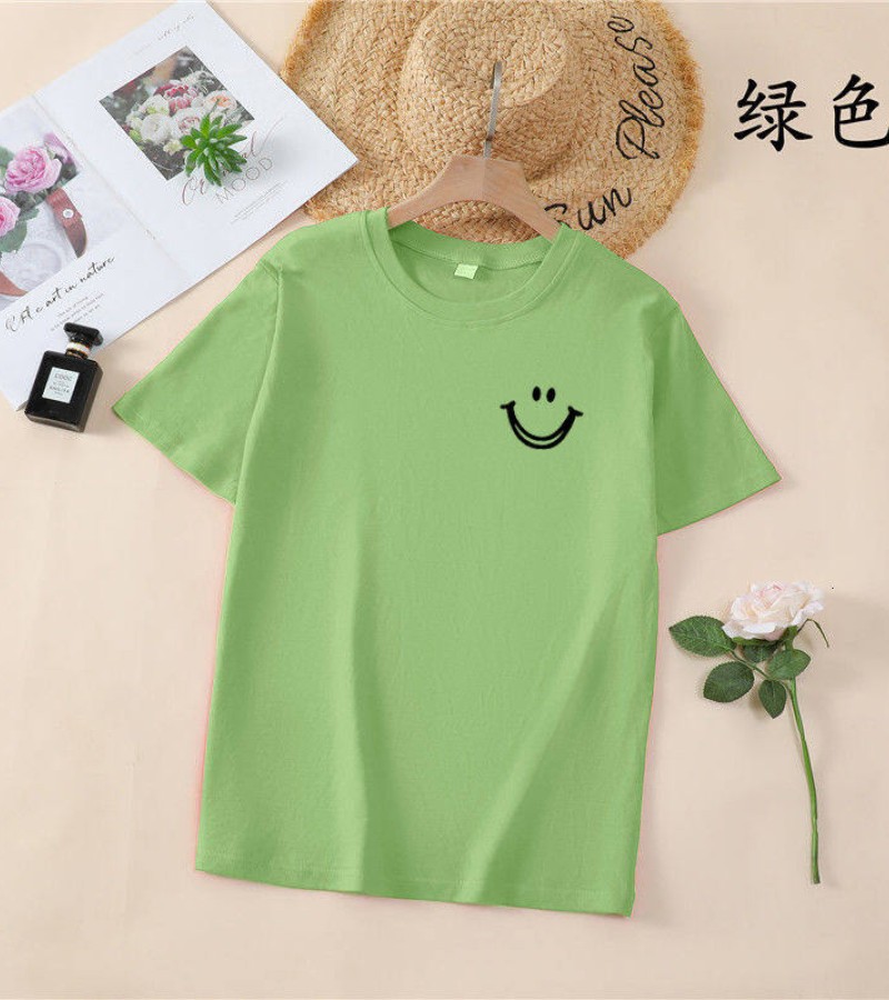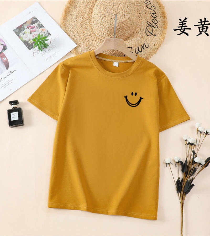 韩国T恤女士优雅舒适微笑T女士短袖卡通衬衫