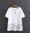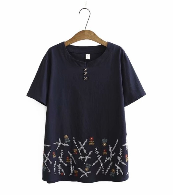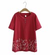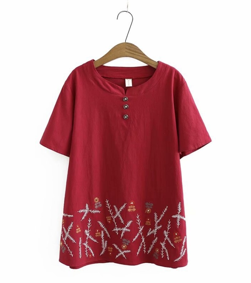加大码白色红色女式花朵刺绣衬衫短袖夏季衬衫复古上衣