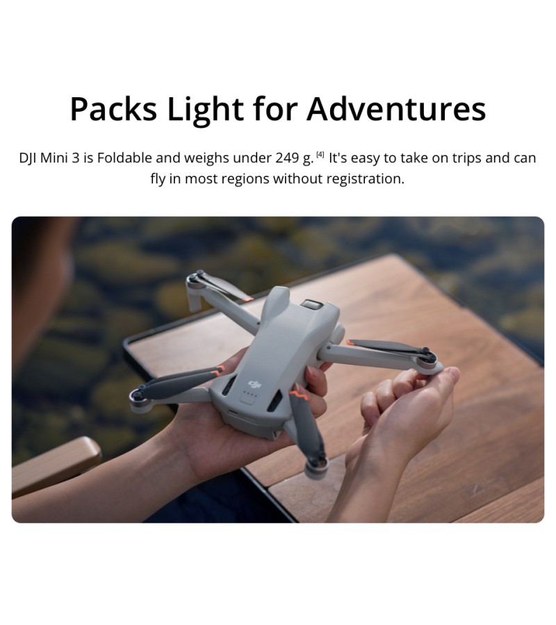DJI Mini 3-无人机相机| 249g以下| 4K HDR视频|延长电池寿命|真正的垂直拍摄| 38kph 5级抗风|(无人机无需注册)