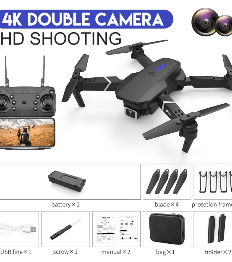 E88 Pro无人机4K高清双摄像头定位1080P WiFi FPV Nova 2022高度保持专业RC四轴飞行器