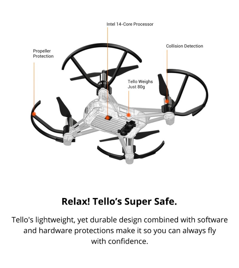 Tello is a mini drone equipped with an HD camera, giving you a bird's-eye view of the world. It is easy to fly, and even a beginner can control it effortlessly.