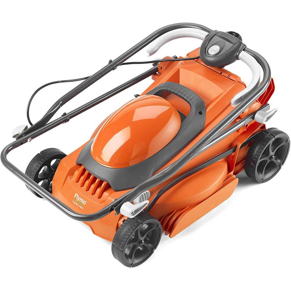 • The Flymo EasiMow 380R is a 38cm electric wheeled rotary lawnmower that is equipped with a powerful 1600W motor.