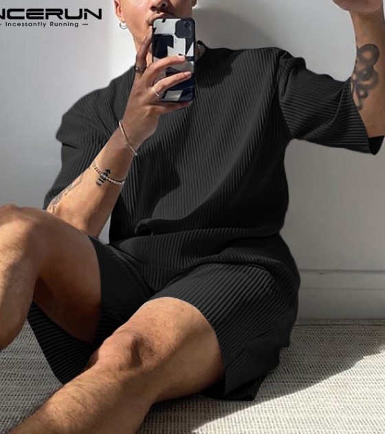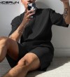 INCERUN Mens Shorty Tracksuit Short Sleeve T Shirt & Shorts Loungwear Gym Sport Sets Suit (Western Style)