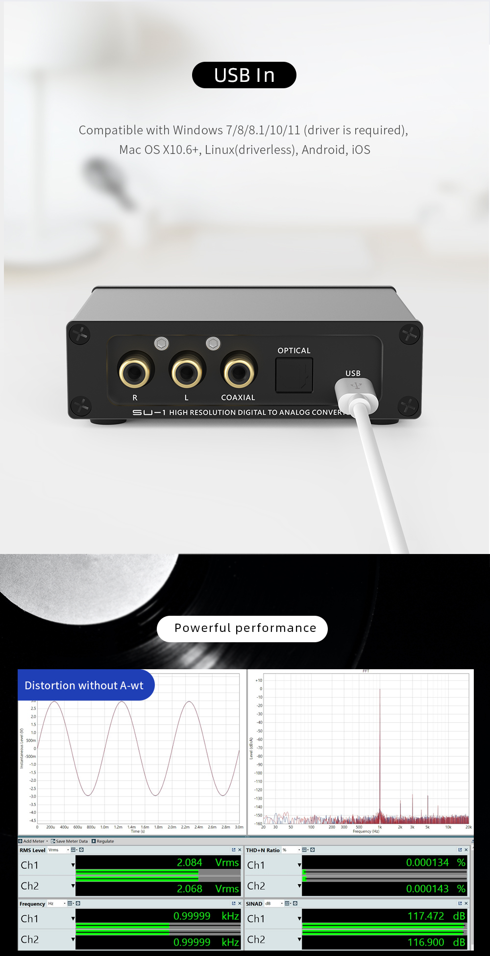 > With a variety of inputs, including coaxial, optical, and USB, the SU-1 provides flexible connectivity options to suit your audio setup. The single-ended line out allows for easy integration with your existing audio equipment.
